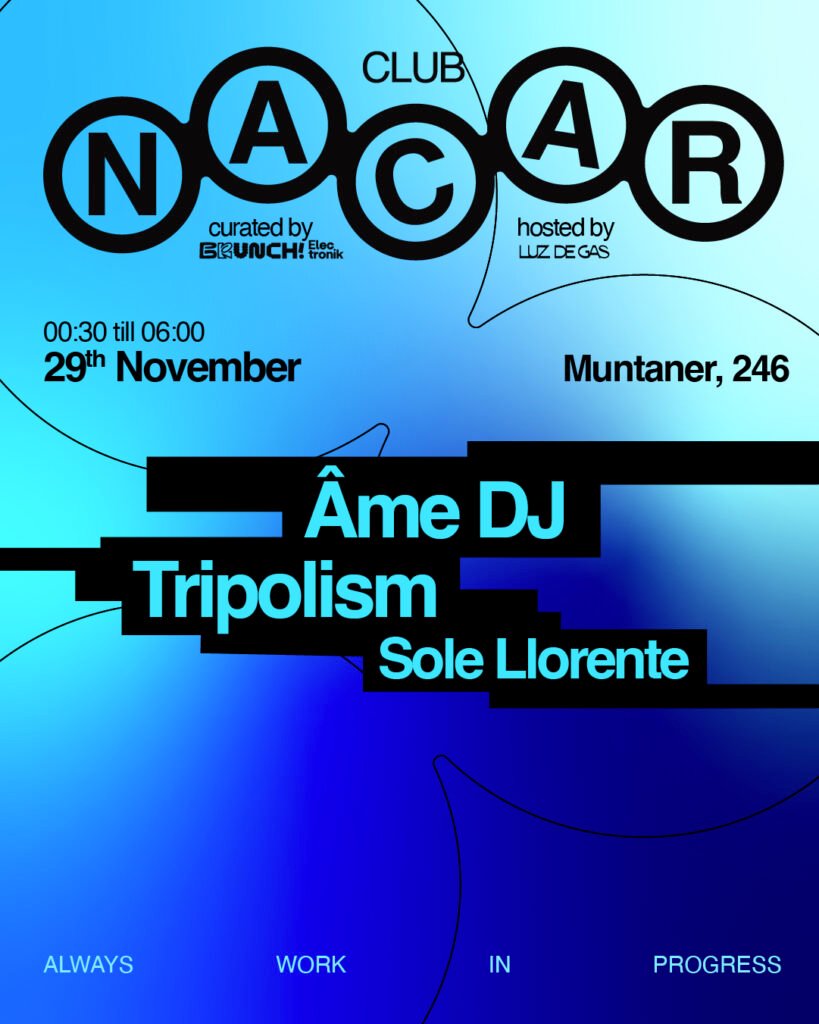 Barcelona amplía su mapa nocturno cada sábado con Nacar Club, un nuevo proyecto impulsado por Brunch Electronik y Luz de Gas que abrirá oficialmente este sábado 29 de noviembre en C/ Muntaner, 246. La noche del opening será con un DJ set de Âme, uno de los nombres más influyentes del sonido Innervisions, el trío danés Tripolism y la argentina Sole Llorente.