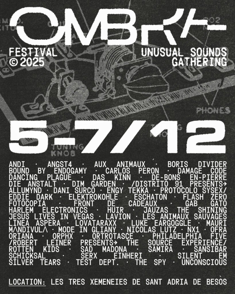 Con más de 70 artistas ya confirmados, Ombra Festival 2025 apuesta por un line-up que une leyendas y nuevas voces del circuito. Figuras como TEST DEPT., SCHICKSAL, FRONT DE CADEAUX, NX1, ORPHX o LUKE EARGOGGLE compartirán programación con proyectos emergentes como ANGST4, AUX ANIMAUX, DANCING PLAGUE o SILENT EM, reflejando el dinamismo del panorama actual y el compromiso del festival con una curaduría rigurosa y visionaria.